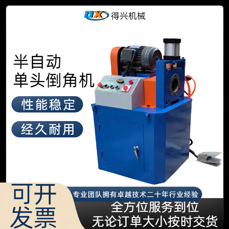 單頭倒角機專用於金屬管材、棒材的端麵加工,能一次性能完成外角倒角、內角修整及平麵打磨,解決傳統工藝毛刺多、角度偏差大的問題,提升工件裝配精度。